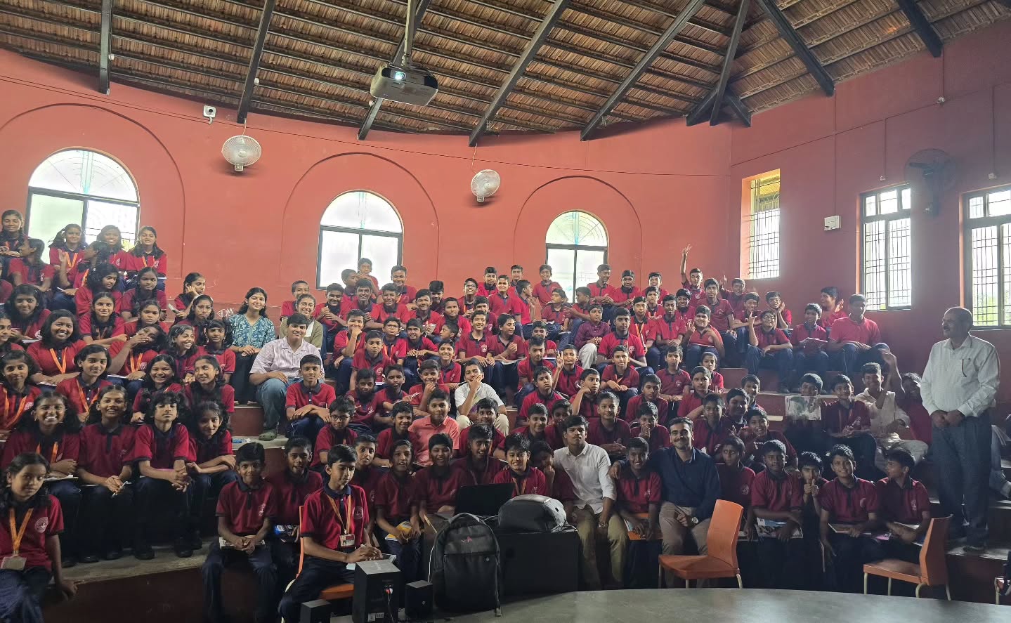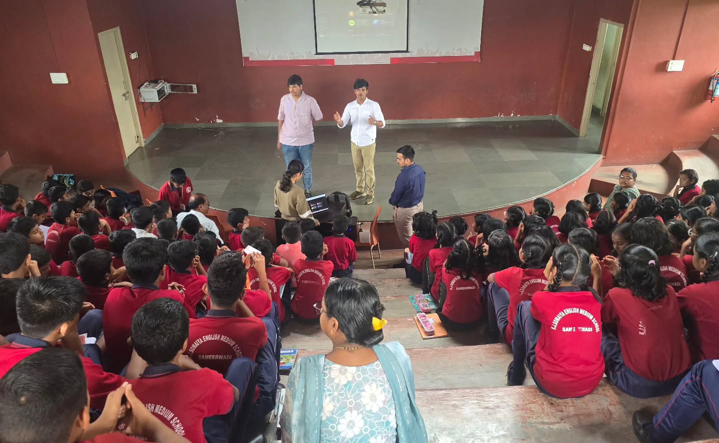 Our enthusiastic student mentors — Mahesh Gunda, Deshna Porwal, Gargi Satwani, Shreysht Pattar, and Omkar Koparde — guided school students through hands-on sessions on various AI tools including ChatGPT, VEED.AI, Scholar GPT, Napkin AI, Suno AI, Leonardo AI, and Canva.